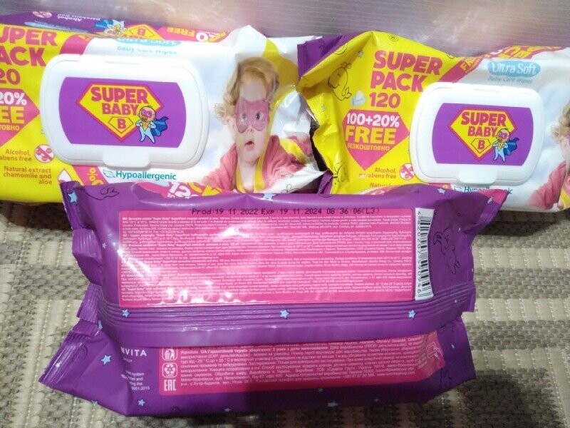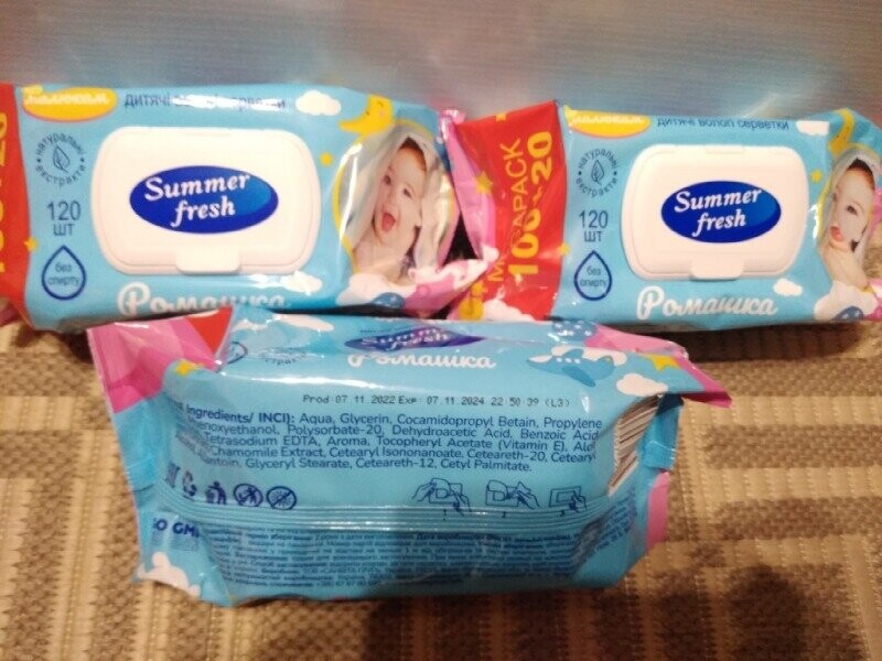 Дитячі вологі серветки summer fresh, super baby 120шт